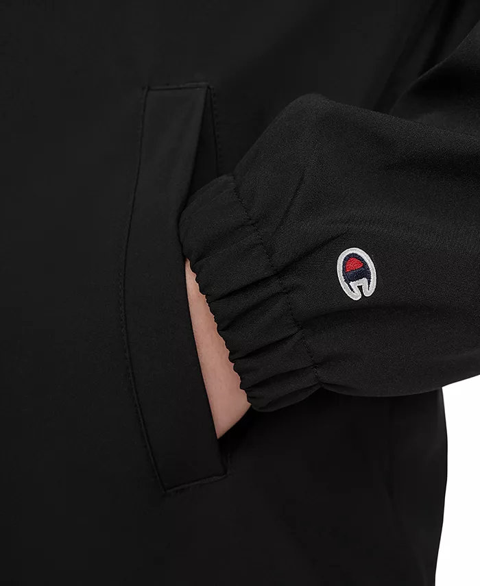 Эта полностью черная куртка от Champion, выполненная в строгом и уверенном стиле, украшена культовым логотипом в области сердца.