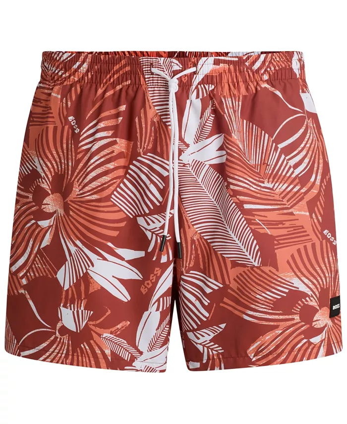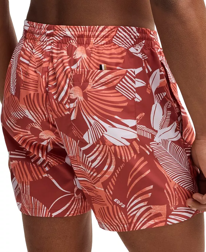 Яркие шорты для плавания от Boss. Эта пара полностью на подкладке, с сезонным принтом и этикеткой с логотипом.