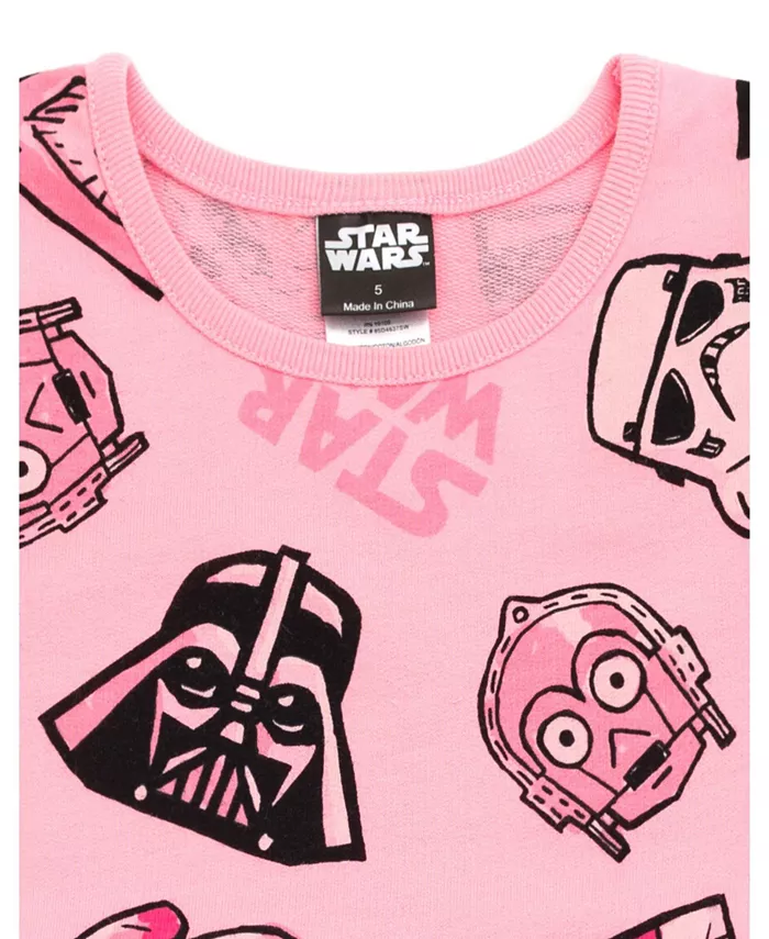 Добро пожаловать в приключение всей жизни в далекой-далекой галактике с этим крутым и удобным нарядом из «Звездных войн»! Это модное платье-фигуристка с короткими рукавами украшено милыми и красочными принтами по всей поверхности с изображением любимых персонажей Чуи, C-3PO, R2-D2, Дарта Вейдера, штурмовиков, эвоков и принцессы Леи.