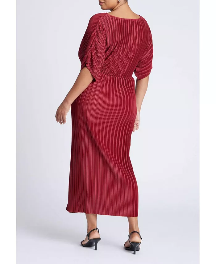 100% полиэстер. Свободный крой. Без подкладки. Надевается без застежки, вырез лодочкой. Рукав «летучая мышь», короткий рукав. Длина макси 58 дюймов от самой высокой точки плеча для размера 18. Завязка на талии. Функциональные завязки, которые завязываются спереди. Эластичная трикотажная плиссе. Машинная стирка в холодной воде на щадящем режиме с похожими цветами. При необходимости используйте только нехлорный отбеливатель. Не сушить в стиральной машине. Сушить в разложенном виде. Гладить при низкой температуре по мере необходимости.