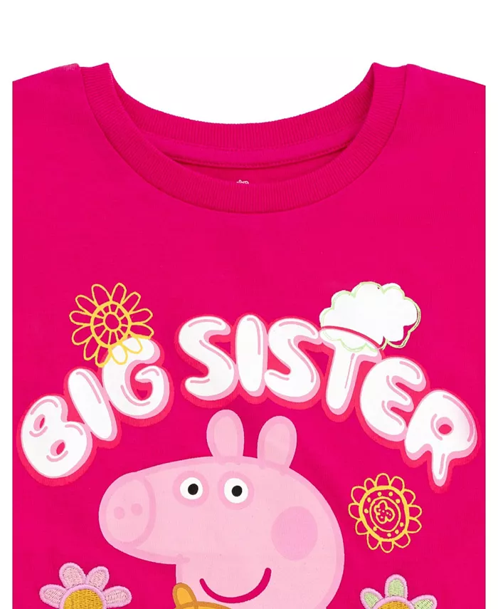 Приготовьтесь к приключениям с этой милой футболкой Peppa Pig! Выбирайте между радужным дизайном с "Birthday Magic" или цветочным принтом с "Big Sister". Мягкая, стильная и идеально подходит для игр!