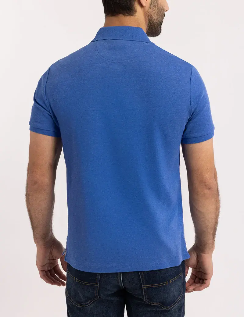 Это поло сочетает в себе повседневную практичность и продуманный стиль. Контрастная тканая отделка придаёт ему изысканный вид, а интерлоковая вязка делает изделие мягким, но структурированным — идеально для элегантных повседневных образов или элегантных выходных.