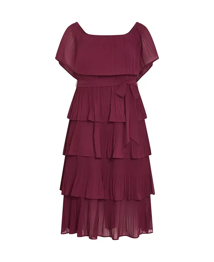 Плиссированный дизайн, эластичная талия со съемным тканым поясом, многоуровневая юбка, длина макси