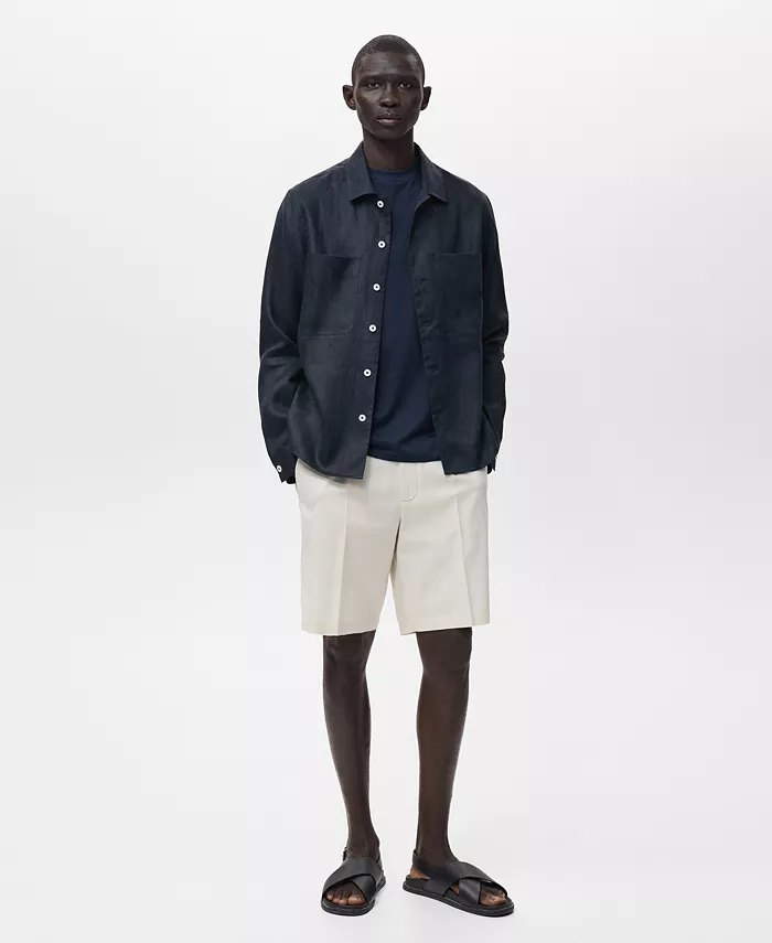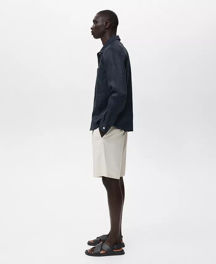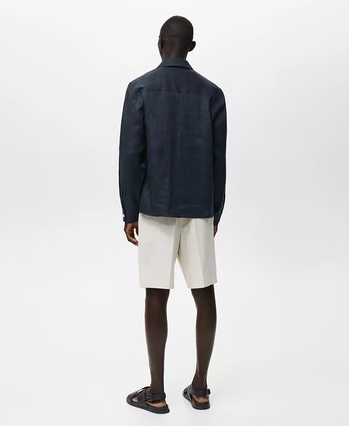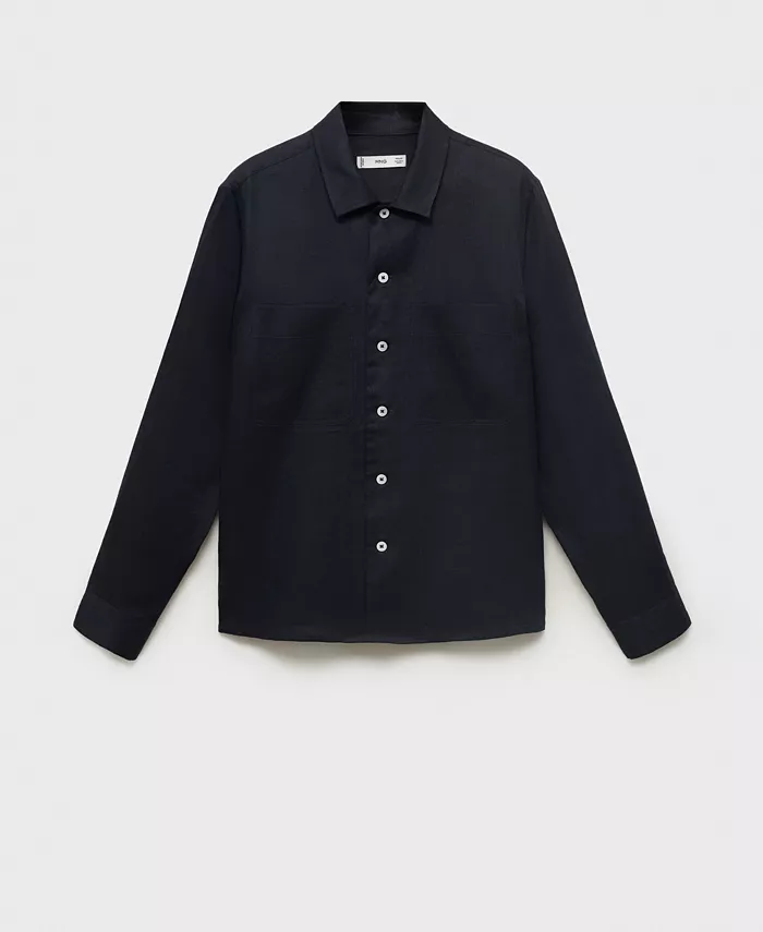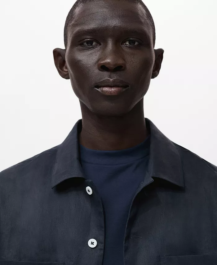 Мужская легкая льняная рубашка-оверсайз MANGO, синий