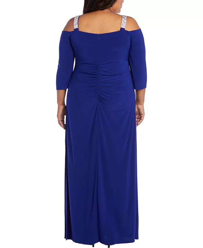 Платье с холодным плечом и декором Plus Size R & M Richards, синий