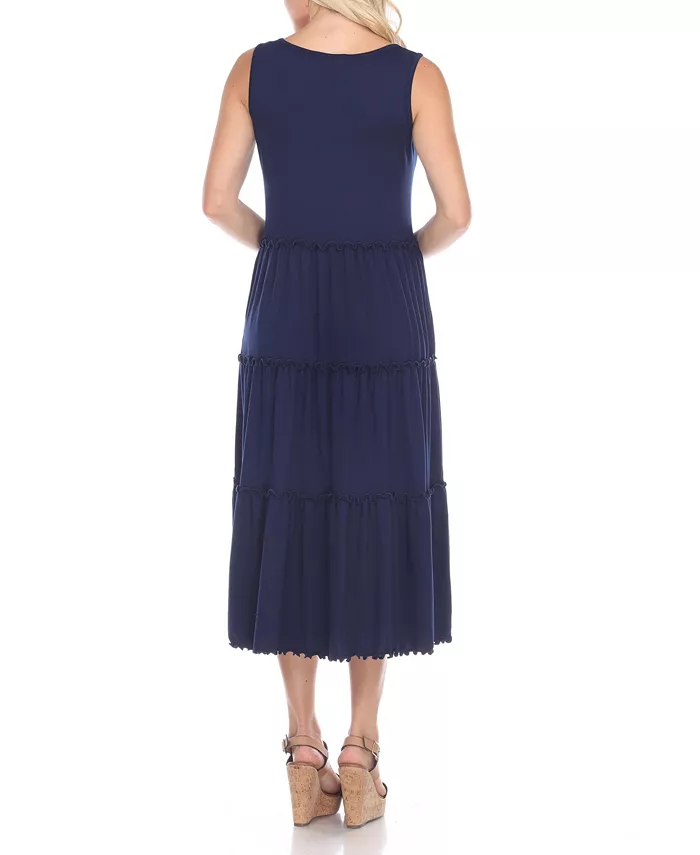 Женское платье миди с круглым вырезом и ярусами White Mark, синий