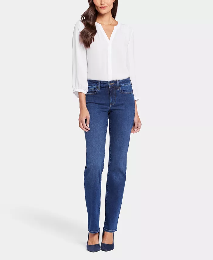 Простая, удлиняющая фигуру конструкция джинсов NYDJ Marilyn Straight Jeans хорошо сочетается с любой одеждой благодаря подчеркивающей фигуру талии и универсальному прямому крою.