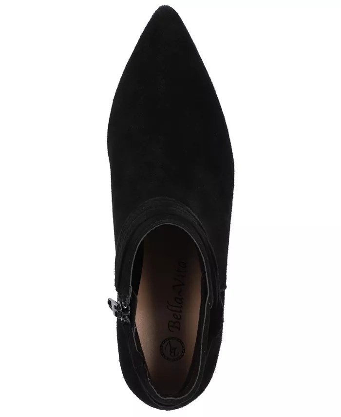 Добавьте в свой гардероб классические кожаные ботильоны Jani by Bella Vita. Трендовый низкий каблук-котенок и мягкая стелька делают эту модель удобной для ношения в течение всего дня. Женственный уникальный дизайн накладок и современная конструкция с острым носком украсят любой наряд.