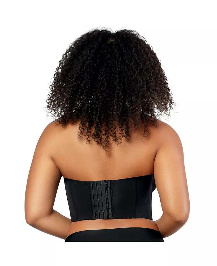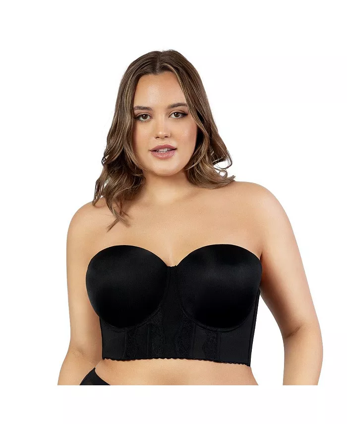 Этот стильный, без бретелек, удлиненный бюстгальтер имеет легкие пенопластовые, гладкие чашки. Силиконовая резинка на вырезе и в верхней части спины удерживает чашки на месте. Многочисленные крючки и петли удлиненной застежки на спине обеспечивают гладкость и максимальную поддержку, идеально подходящую для женщин с полной фигурой и пышной грудью.