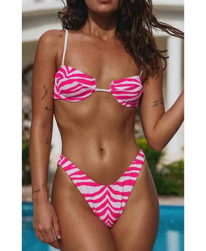 Плавки бикини средней посадки со средней степенью покрытия и высокими вырезами по бокам, которые удлиняют ноги.