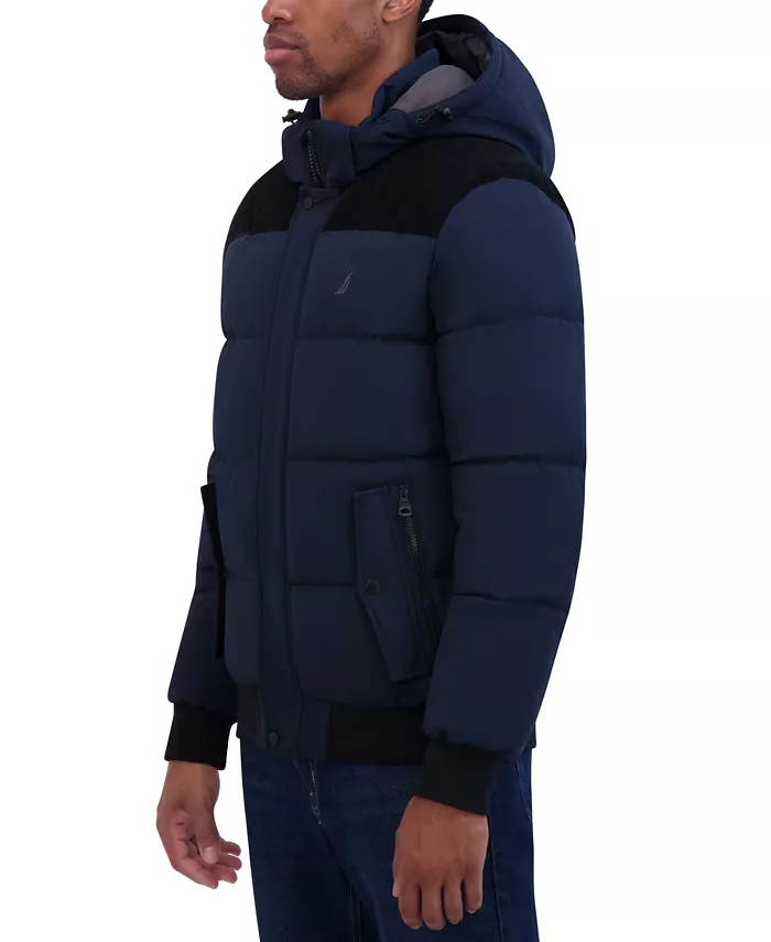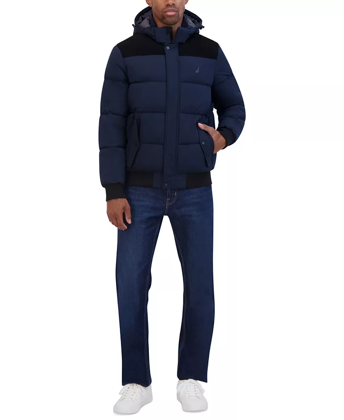 Оставайтесь в тепле и комфорте в этой куртке-бомбере Nautica с эластичной тканью для дополнительного комфорта.