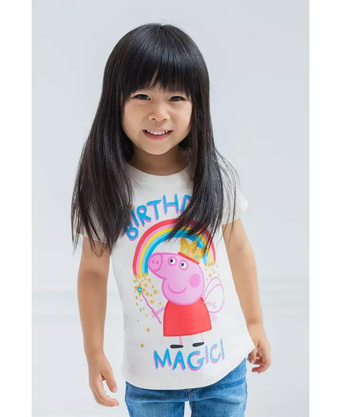Подготовьте свою девочку к приключениям в этой милой футболке Peppa Pig! С рисунком Peppa с надписью «Birthday Magic» или «Big Sister». Мягкая и стильная для веселого дня.