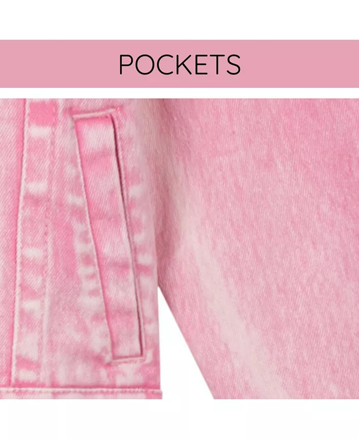 Приготовьтесь к приключениям в Доме Мечты и окунитесь в удивительное чувство стиля Барби в этой милой и удобной джинсовой куртке Барби! Эта модная джинсовая куртка розового цвета с эффектом кислотной стирки идеально подходит для весны и осени и украшена яркими рисунками Барби, которые ваш ребенок будет рад носить с блестящим радужным принтом