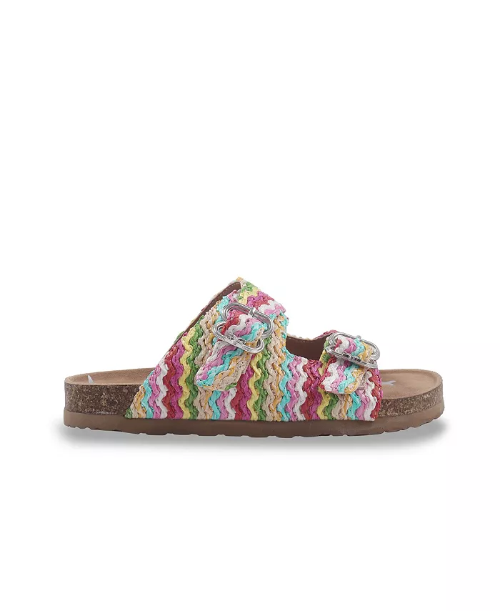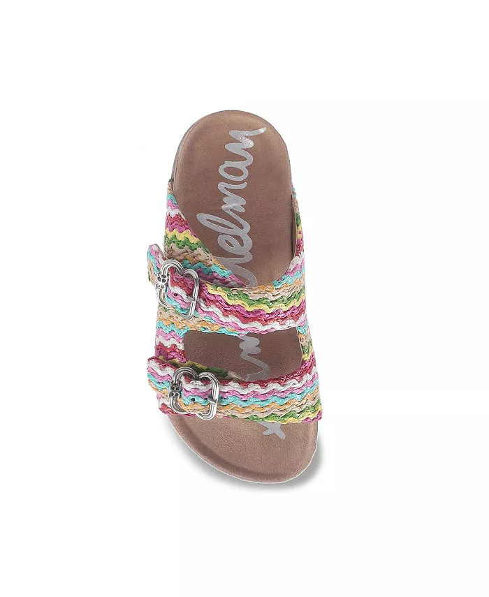 Сандалии Sam Edelman youth с двумя ремешками и застежкой-молнией имеют крупные металлические пряжки с логотипом и яркий разноцветный тканевый верх. Благодаря удобной подошве-стельке эти сандалии идеально подходят для добавления забавного и стильного штриха в летний гардероб любой молодой модницы.