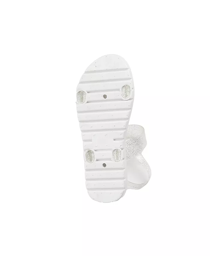 Эти милые сандалии украшены бантом из стразов для придания им блеска. Надежный ремешок сзади удерживает их на месте, а удобная застежка на ремешке позволяет легко надевать и снимать их. Идеально подходит для особых случаев или прогулок