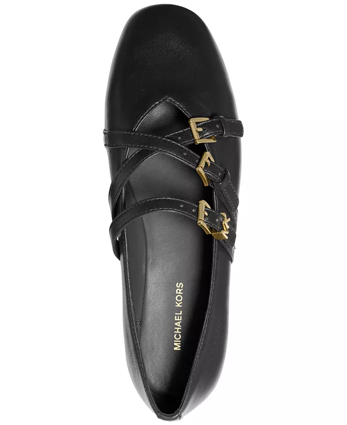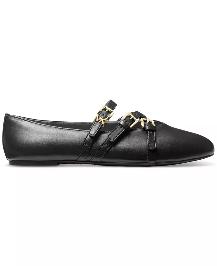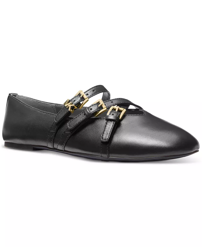 Три ремешка с пряжками придают классическому балетному стилю элегантность Мэри Джейн в новых балетках Indy от MICHAEL Michael Kors.
