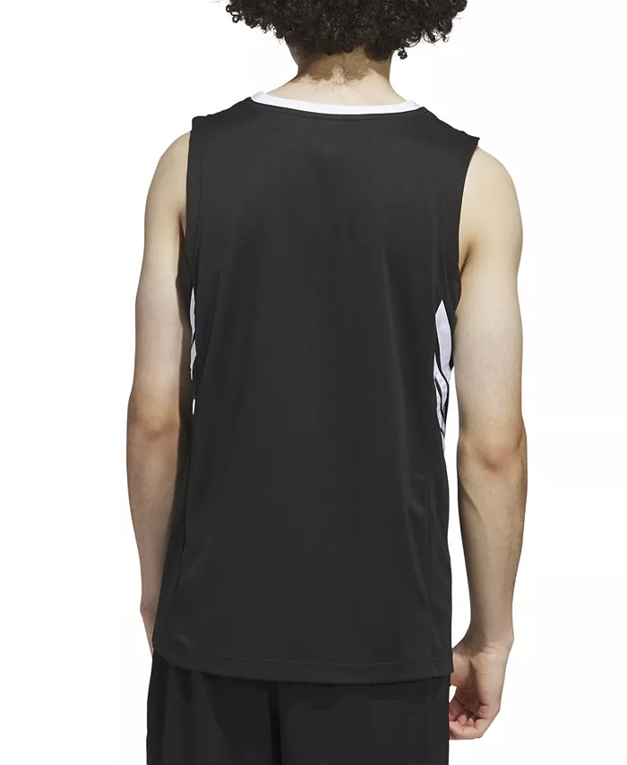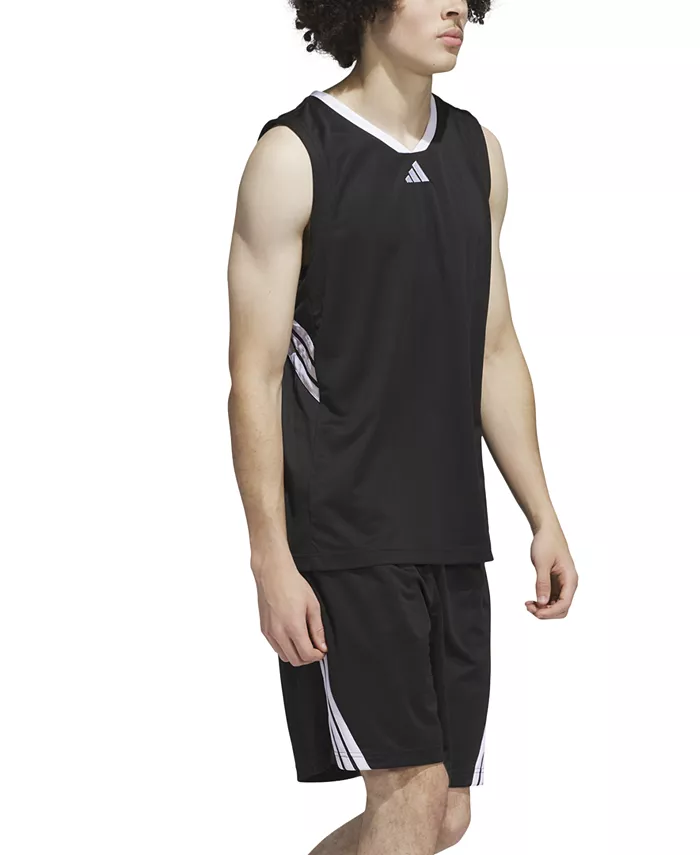 Классический комфорт для площадки. Эта баскетбольная майка adidas с широкими проймами и V-образным вырезом обеспечивает полную свободу движений при каждом броске. Логотип 3 Bar на груди и 3 полоски по бокам завершают культовый образ.
