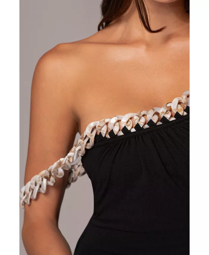 Подчеркните свой стиль с помощью асимметричного платья Monette с уникальным асимметричным вырезом и элегантными акриловыми цепочками-бретельками.