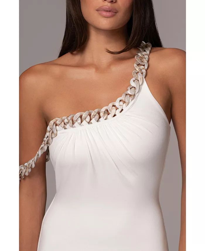 Подчеркните свой стиль с помощью асимметричного платья Monette с уникальным асимметричным вырезом и элегантными акриловыми цепочками-бретельками.