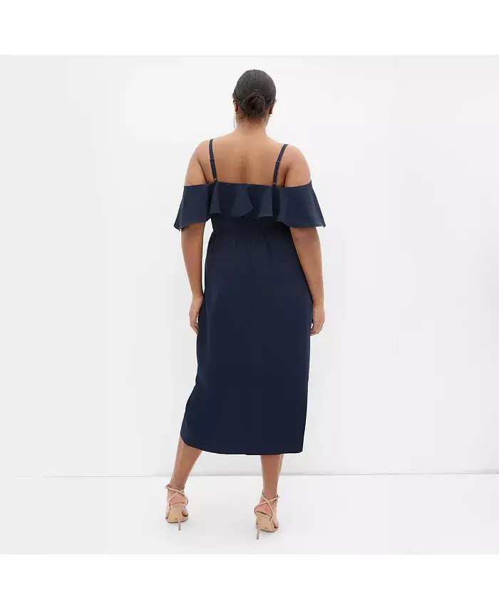 Платье миди с драпировкой Plus Size Flirtation CITY CHIC, синий