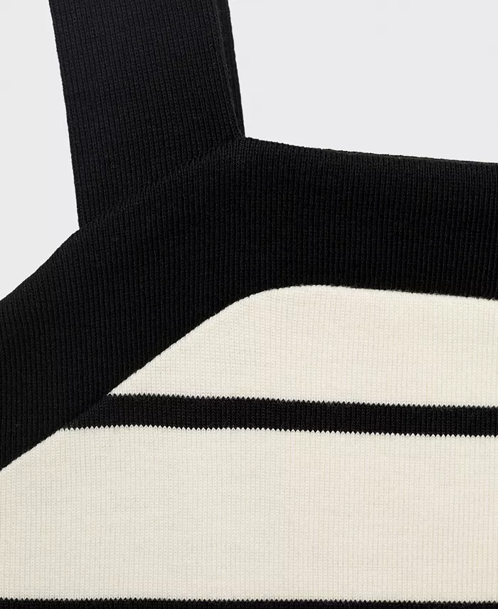 Женское полосатое платье миди MANGO, черный