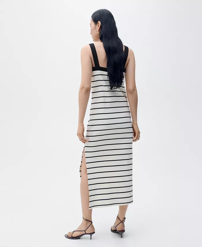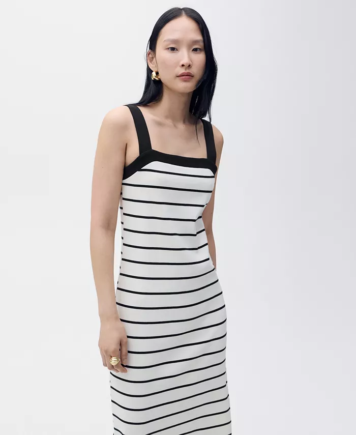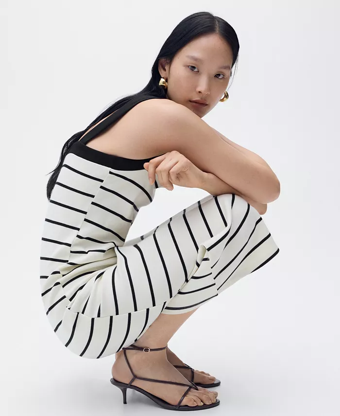 Создайте сбалансированный силуэт в полосатом платье-миди от Mango.