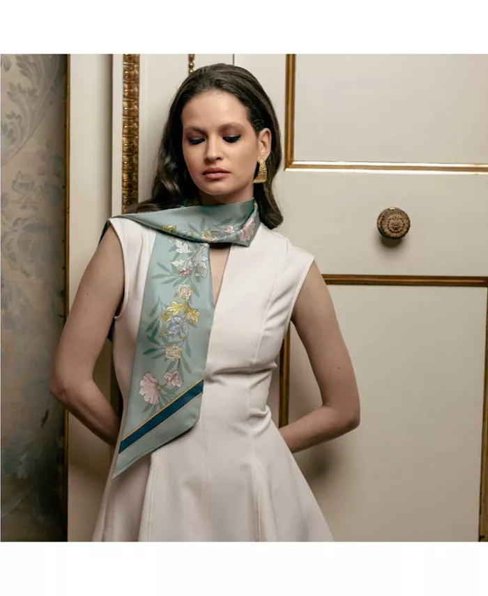 Две стороны, два цветочных принта, бесконечное количество способов ношения. Sabrina — длинный, узкий шелковый шарф, сделанный в Комо, Италия, из 100% шелковой саржи. Повяжите его вокруг шеи, запястья, сумки или волос. Легкий, мягкий и женственный. Повяжите его вокруг шеи, хвоста, сумки — Sabrina сделает любой наряд продуманным.