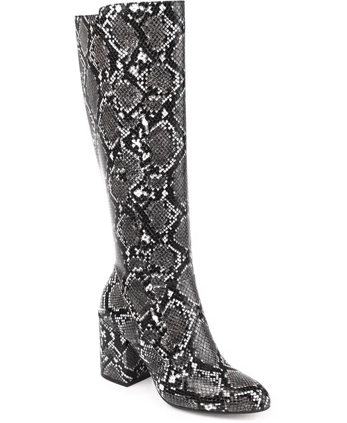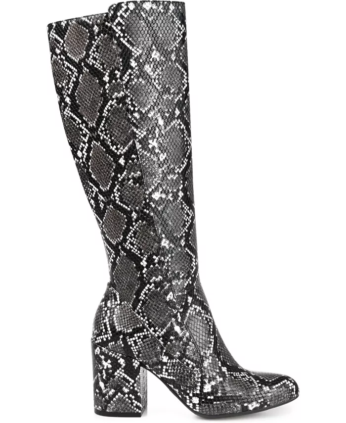 Ботинки, которые делают образ. Ботинки Tavia от Journee Collection имеют верх из искусственной кожи с текстурой под ящерицу, который доходит до колен, и дополнен внутренней молнией. Стелька из пены Tru Comfort толщиной 4 мм делает их удобными для стояния, а блочный каблук добавляет идеальную высоту.