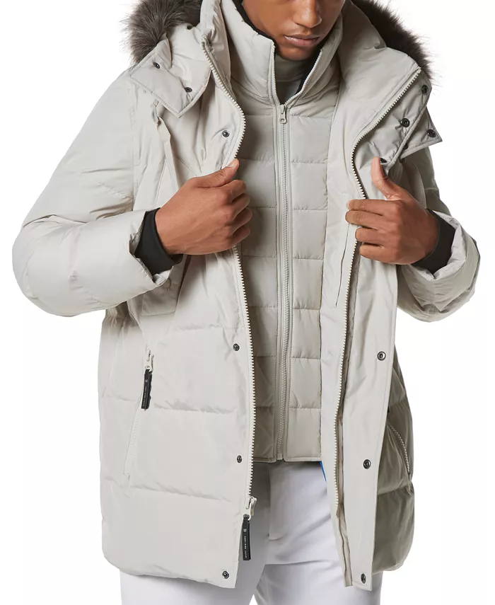 Наша парка с четырьмя карманами и пуховым наполнителем сшита из водонепроницаемой ткани рип-стоп и оснащена прикрепленным стеганым внутренним нагрудником для максимальной многослойности и тепла. Съемный капюшон с отделкой из искусственного меха обеспечивает дополнительную защиту от стихии.