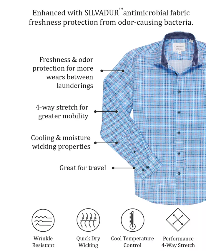 Мужская классическая рубашка Performance Stretch с охлаждающим эффектом, облегающего кроя ConStruct, синий 6 828₽