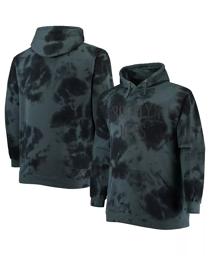 Мужская черная толстовка с капюшоном Brooklyn Nets Big and Tall Wordmark Cloud Dye Fanatics