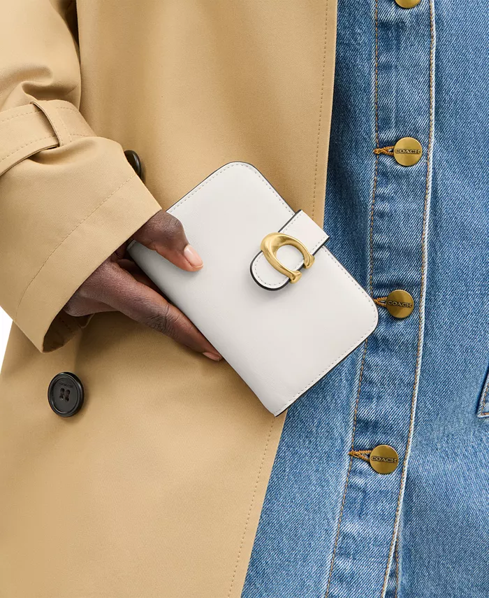Этот полосатый кошелек среднего размера, изготовленный из гладкой кожи, представляет собой современную интерпретацию архивного дизайна Coach 1970-х годов.