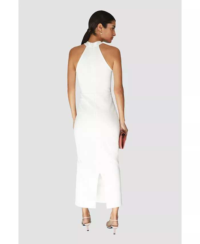 Платье Sonata от Marcella задает все нужные ноты, когда речь идет о возвышенной вечерней одежде. Коктейльное маленькое черное платье без рукавов, оно сшито из структурированного европейского понте средней эластичности для облегающей посадки, с мини-разрезом, длиной до щиколотки и уникальным асимметричным вырезом с воротником-чокером.