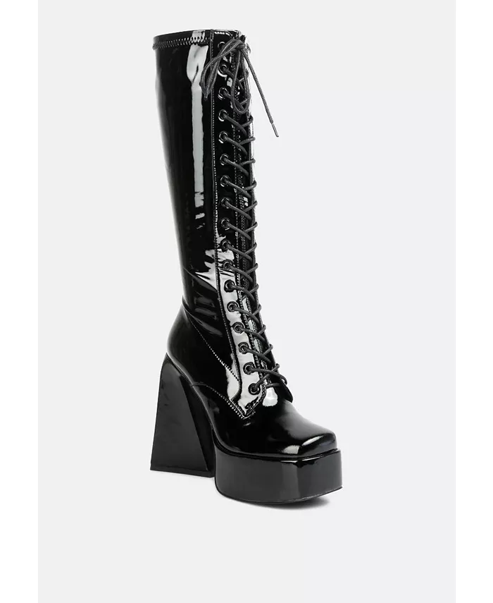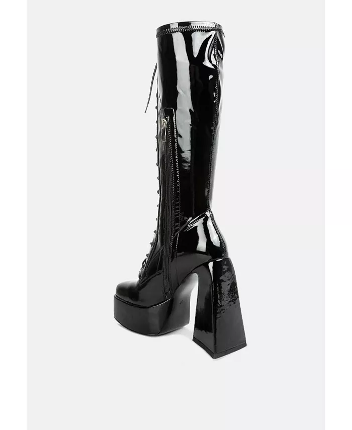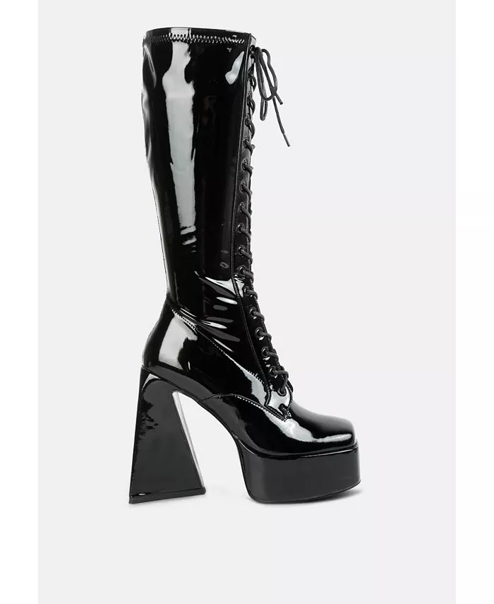 Лакированные PU-сапожки на шнуровке Snowflakes — пара ошеломляющих вечеринок. Эти сапоги на высоком каблуке, подходящие для сумасшедшей клубной ночи, наверняка остановят движение одним лишь взглядом. Они поставляются с квадратным носком спереди и модными треугольными каблуками с платформами, которые добавляют вам высоты, не нанося вреда вашим ногам.