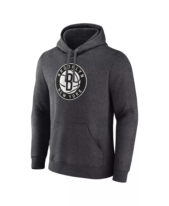 Мужская толстовка с капюшоном Heather Charcoal Brooklyn Nets Primary Logo Pullover Hoodie Fanatics