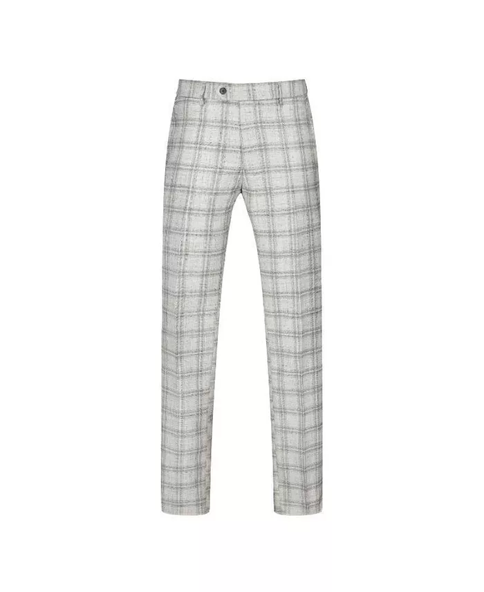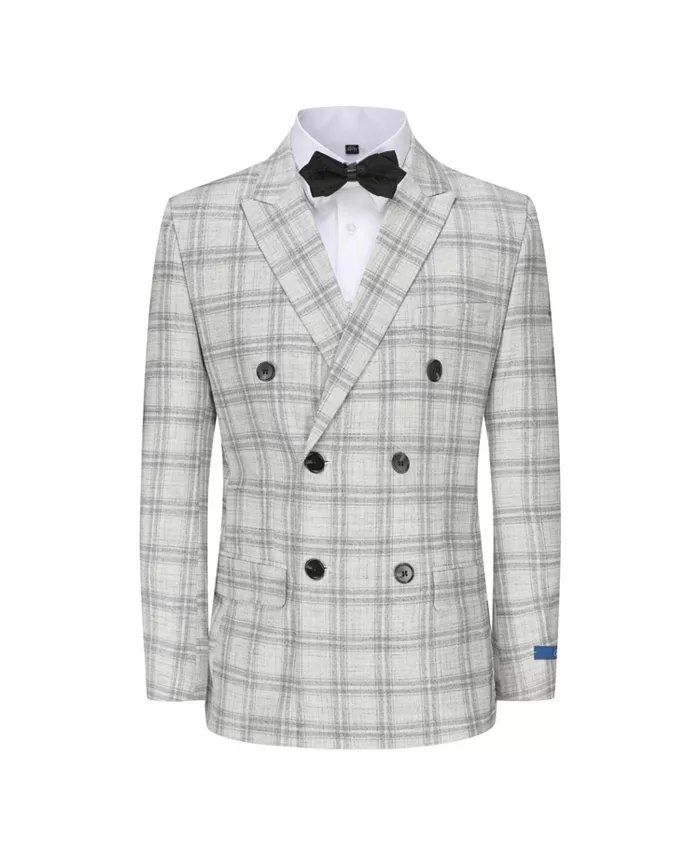 Мужской серый клетчатый двубортный костюм 2 предмета Slim Fit Gino Vitale, белый