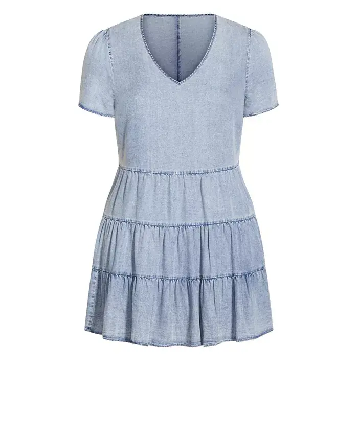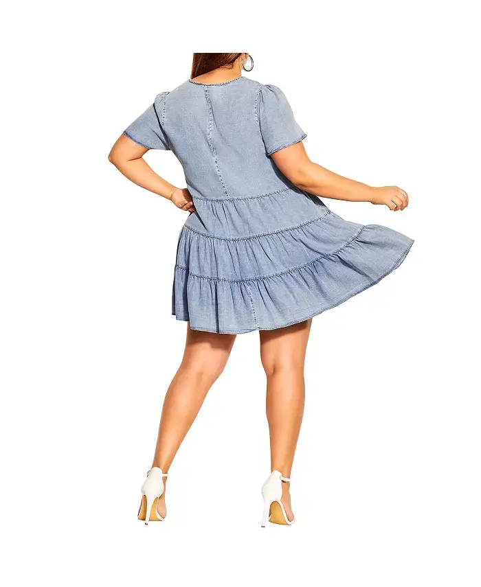 Платье джинсовое многоярусное Plus Size CITY CHIC, синий