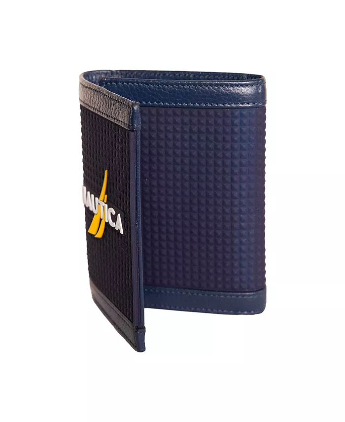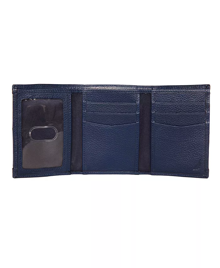 Мужской кожаный трехстворчатый кошелек с логотипом Nautica, синий