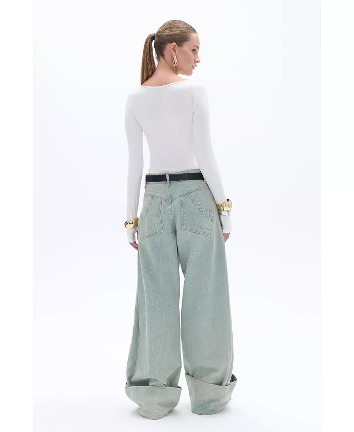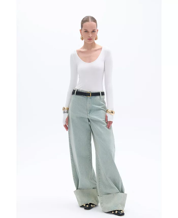 Боди с круглым вырезом, выполненное из супермягкой и суперэластичной ткани бренда, слегка облегает фигуру и приподнимает ее во всех нужных местах.