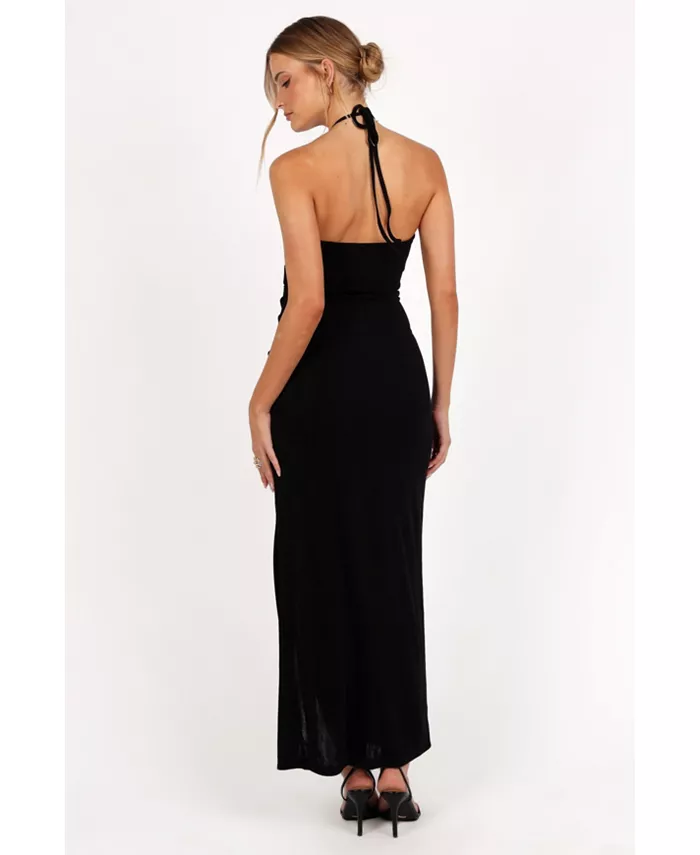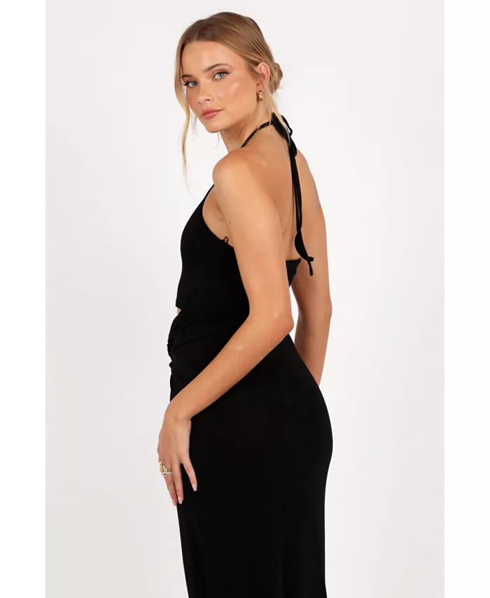Поднимите свой вечерний образ на новый уровень с этим потрясающим макси-платьем! Благодаря завязывающемуся вырезу халтер и вырезу спереди под грудью вы обязательно произведете впечатление. Эластичный материал обеспечивает удобную посадку, которая идеально подходит для любого случая.