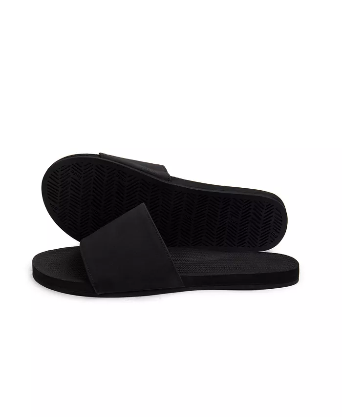 ESSNTLS Slide: Поднимите свой стиль с нашими шлепанцами, изготовленными из экологически чистых материалов, с подошвой из 100% переработанных шин и чистым верхом. Выигрышное сочетание экологичного дизайна и стиля. Создано корпорацией B Corp, которая возглавляет глобальное движение за бизнес как силу добра.