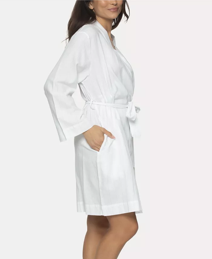 Для шикарного отдыха насладитесь нашим халатом Mireille. Этот халат из хлопкового твила в классическую полоску имеет широкие рукава, боковые карманы и пояс.