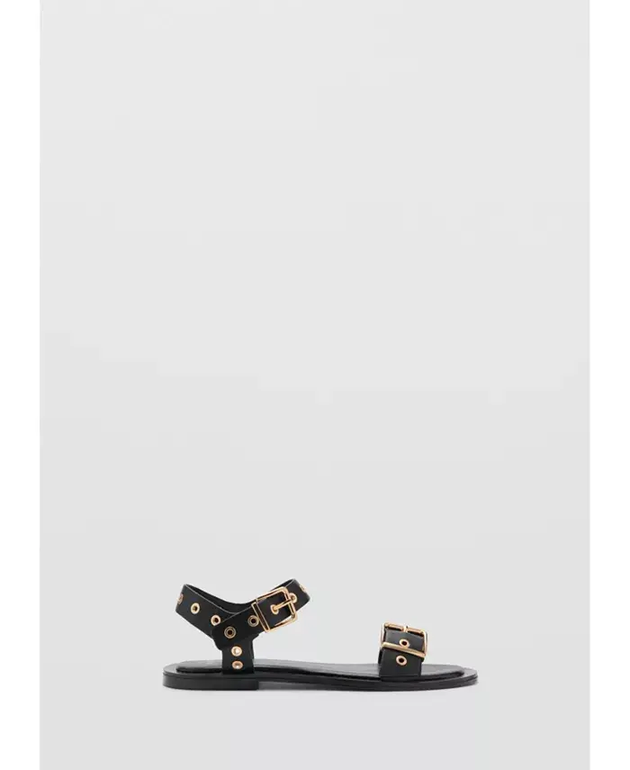 Сандалии с пряжками и люверсами от Mango предлагают авангардный стиль с комфортом на весь день. Благодаря плоской подошве, круглому носку, смелому дизайну ремешка с акцентами на люверсах, застежке на пряжке и внутренней подкладке эти сандалии идеально подходят для придания стильного акцента повседневным образам.