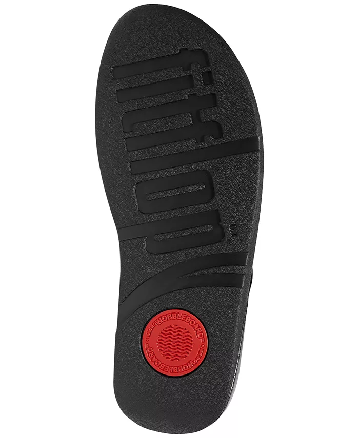 Мягкая танкетка и блестящая фурнитура обеспечивают стильный образ в удобных босоножках FitFlop Fino.
