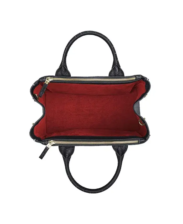 Дизайн Bella сочетает в себе как классические, так и современные линии, что делает ее идеальным спутником для современной женщины. Острая и структурированная форма изготовлена в Италии из телячьей кожи с тиснением под крокодила. Имеет организованную замшевую внутреннюю часть с центральным отделением и боковыми карманами на молнии во всю длину, боковые стороны можно расширить для дополнительного пространства.