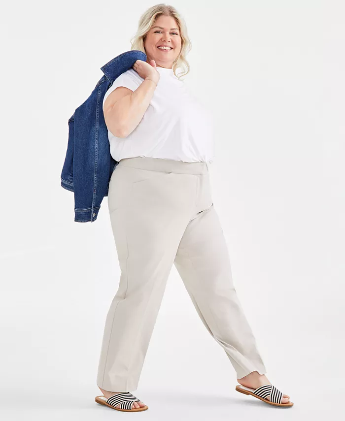 Прямые брюки для пышных форм Plus Size Curvy-Fit JM Collection, коричневый/бежевый