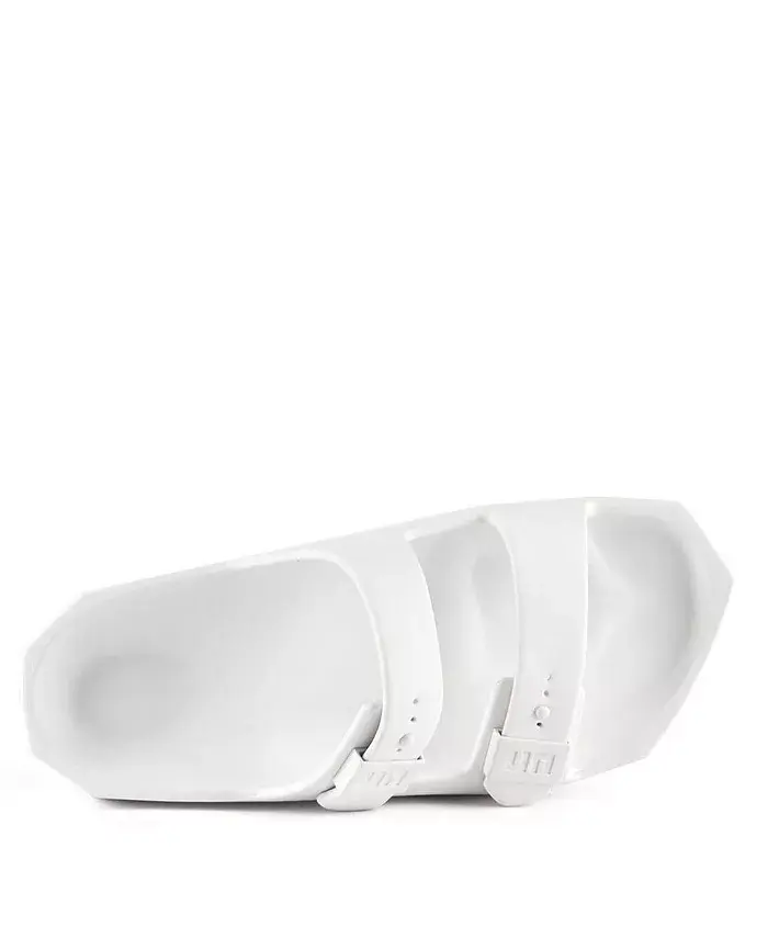 Moses — это унисекс-слайдеры с открытым носком, имеющие фирменные формы United Nude, два регулируемых ремешка и удобную формованную стельку. Их форма создана из цельной 3D-печатной формы, метод, который устраняет необходимость сборки нескольких частей, повышая как долговечность, так и комфорт. Этот дизайн предлагает практичность с учетом устойчивости, что соответствует миссии United Nude по упрощению производства обуви.