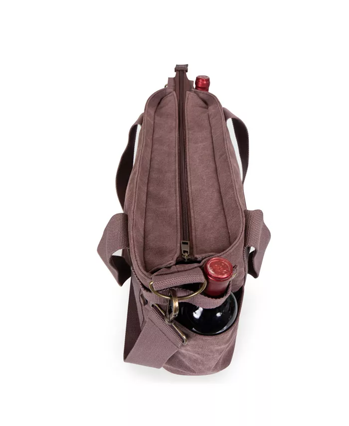 Изолированный салон Два боковых кармана для надежного хранения бутылок вина Съемный ремень для плеча Размеры продукта: 20" x 4.45" x 11.75" Холст Полиэстер/Хлопок/Кожа/Дерево акации Протирать начисто
