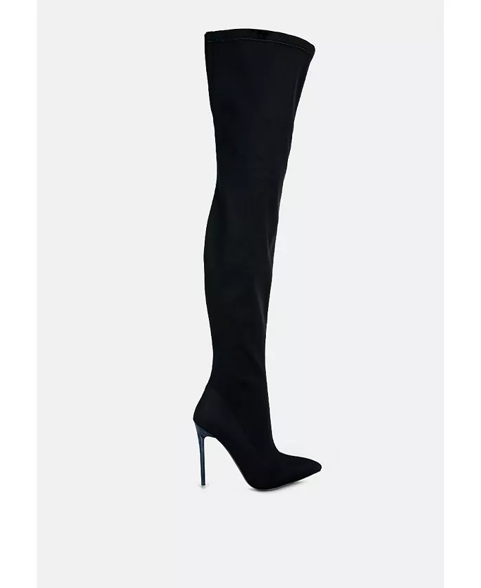 Сапоги на каблуке гладкие и тонкие, красиво облегают ваши ноги. Высокие шпильки и заостренный носок придают им острый вид. Сделанные из суперэластичной лайкры, эти сапоги на высоком каблуке моделируют ваши ноги и обеспечивают гибкость. Мягкая стелька снимает напряжение и обеспечивает комфорт.