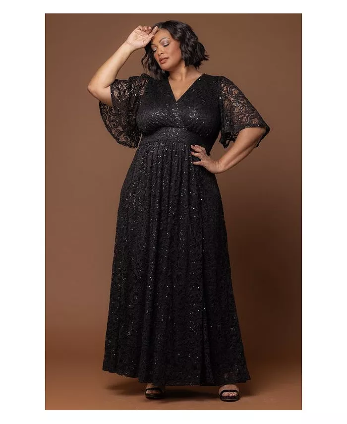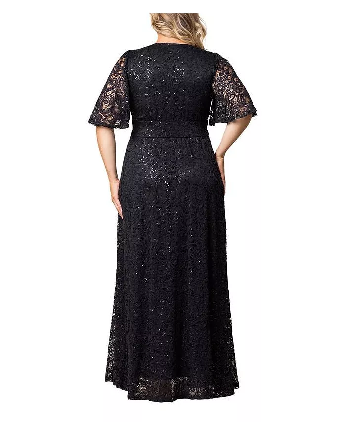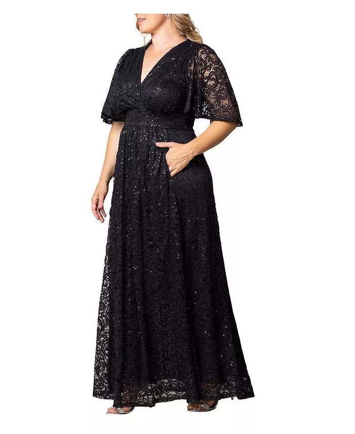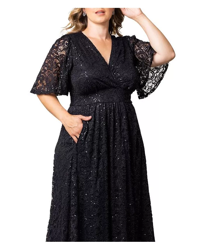 Вечернее платье с люрексом и кружевом Plus Size Luminous Sequin с карманами Kiyonna, черный